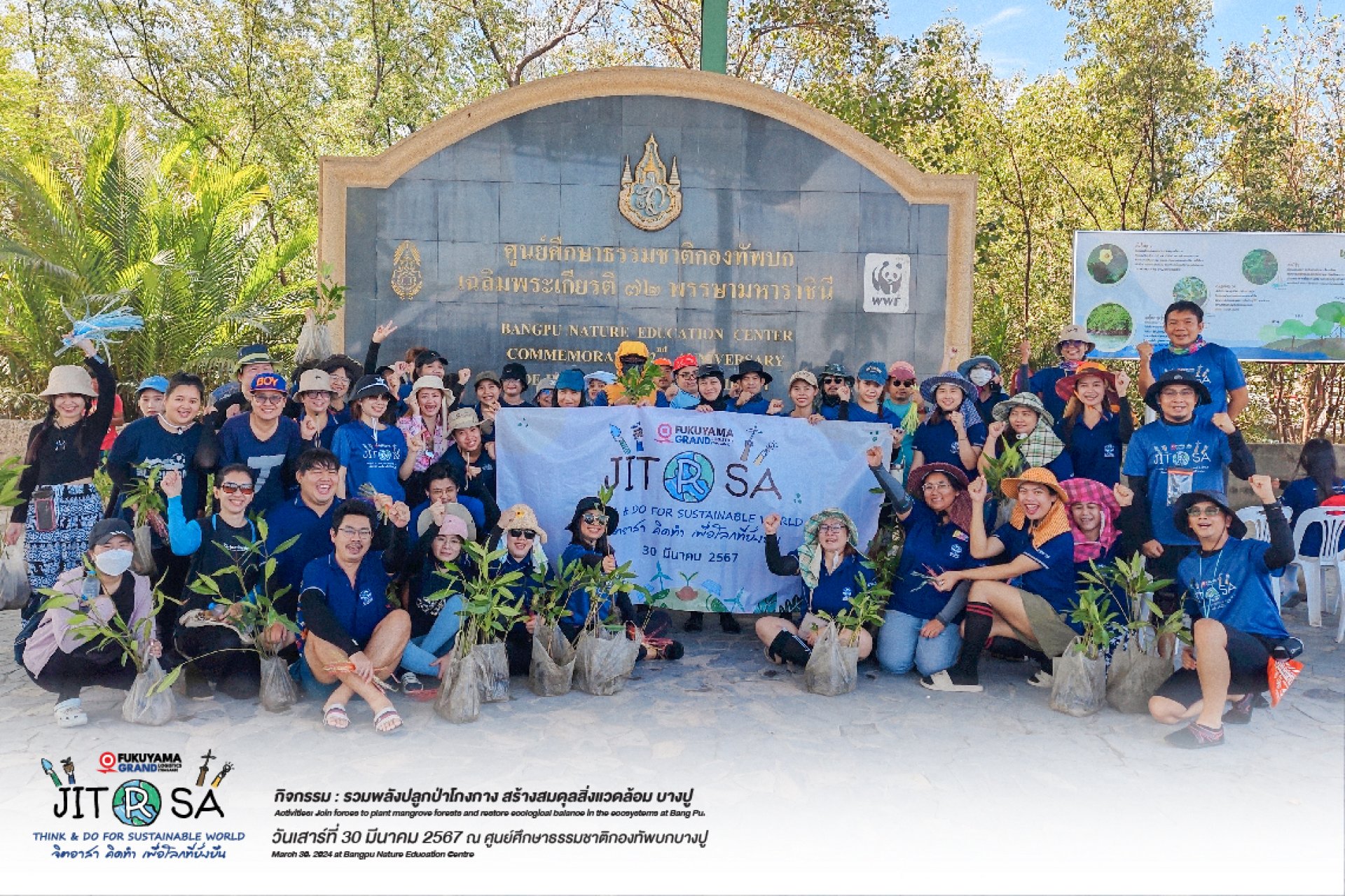 Fukuyama Grand Logistics (Thailand) is committed to environmental preservation, aiming to restore and enhance natural resources. As part of this mission, the company organized the first event under the FGL Volunteer Spirit for a Sustainable World initiative: Mangrove Planting for Environmental Balance. The event took place on March 30, 2024, at the Army Natural Study Center in Bang Pu, Samut Prakan Province.